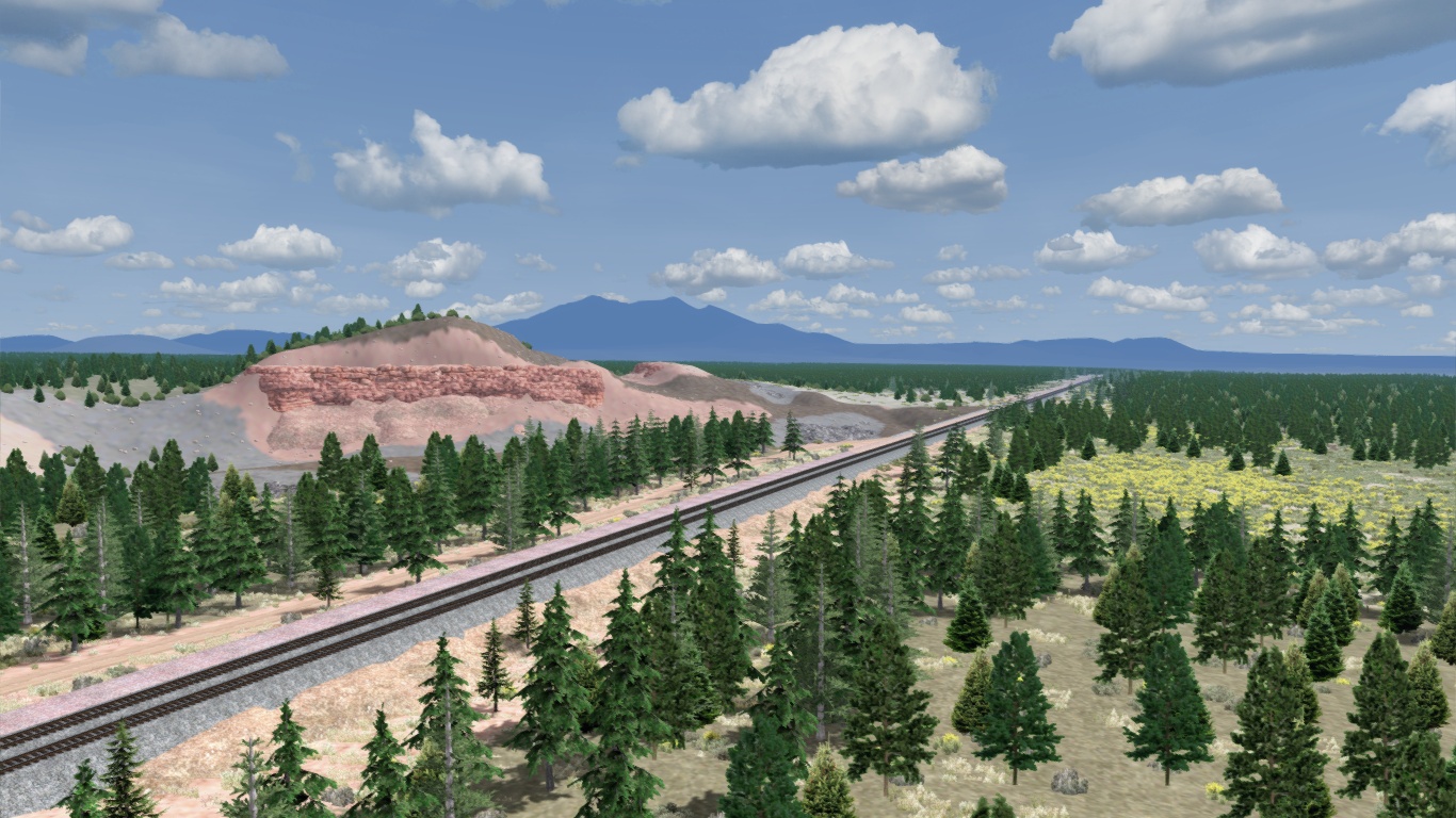 Work has been on and off throughout the Summer, but as of now, the original section of the map from Winslow to Williams is essentially finished. All major scenery work in Flagstaff has been completed, which now allows me to focus more on building the Crookton Cutoff and Phoenix sub extensions.